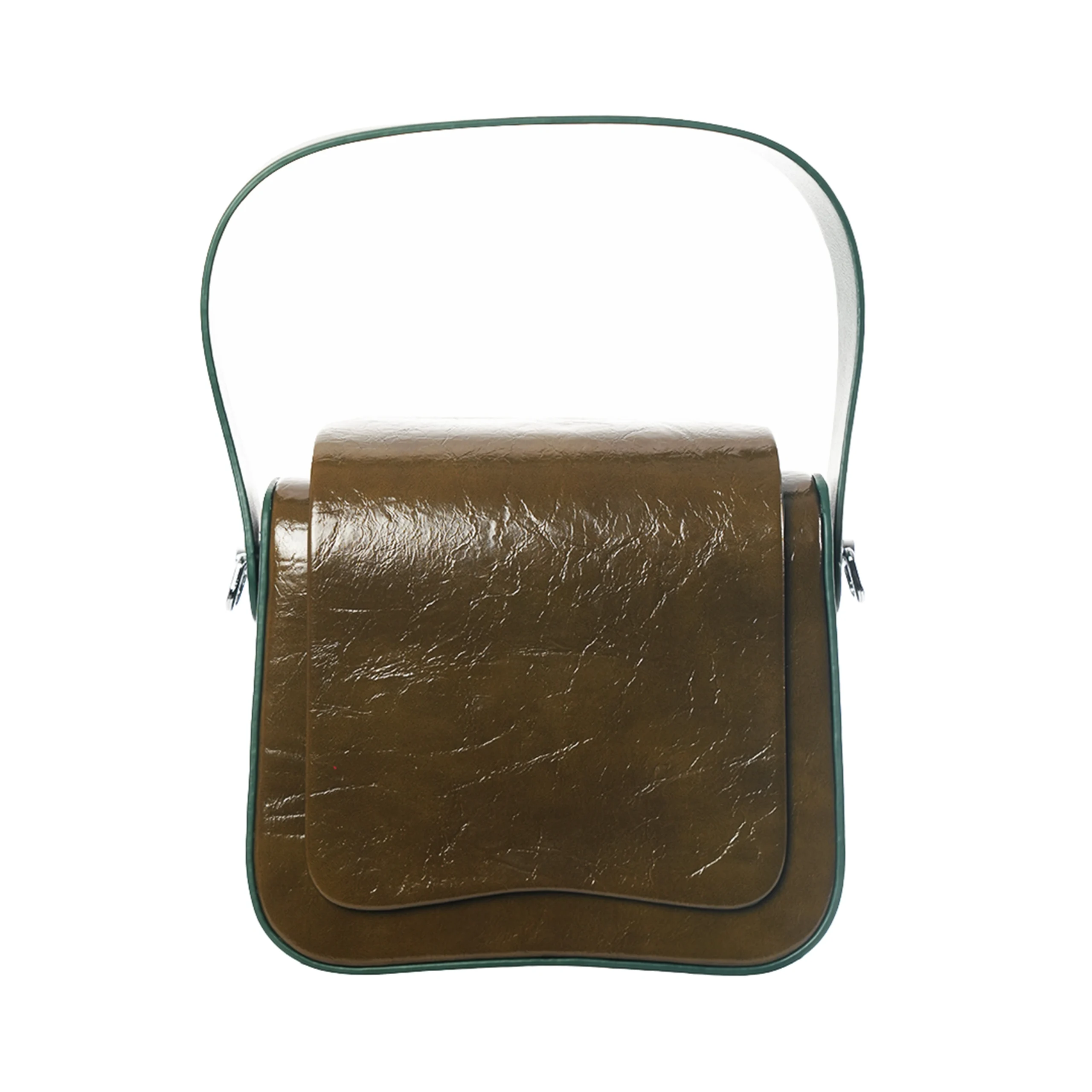Designed in Rich Maroon, Army Green, Black and Espresso tone with a distinctive vintage crackle texture, Teja features a structured silhouette that holds its shape beautifully. The curved flap closure adds softness to its strong form, while the top handle offers a classic finish. A detachable shoulder strap allows seamless transition from hand carry to crossbody wear.
