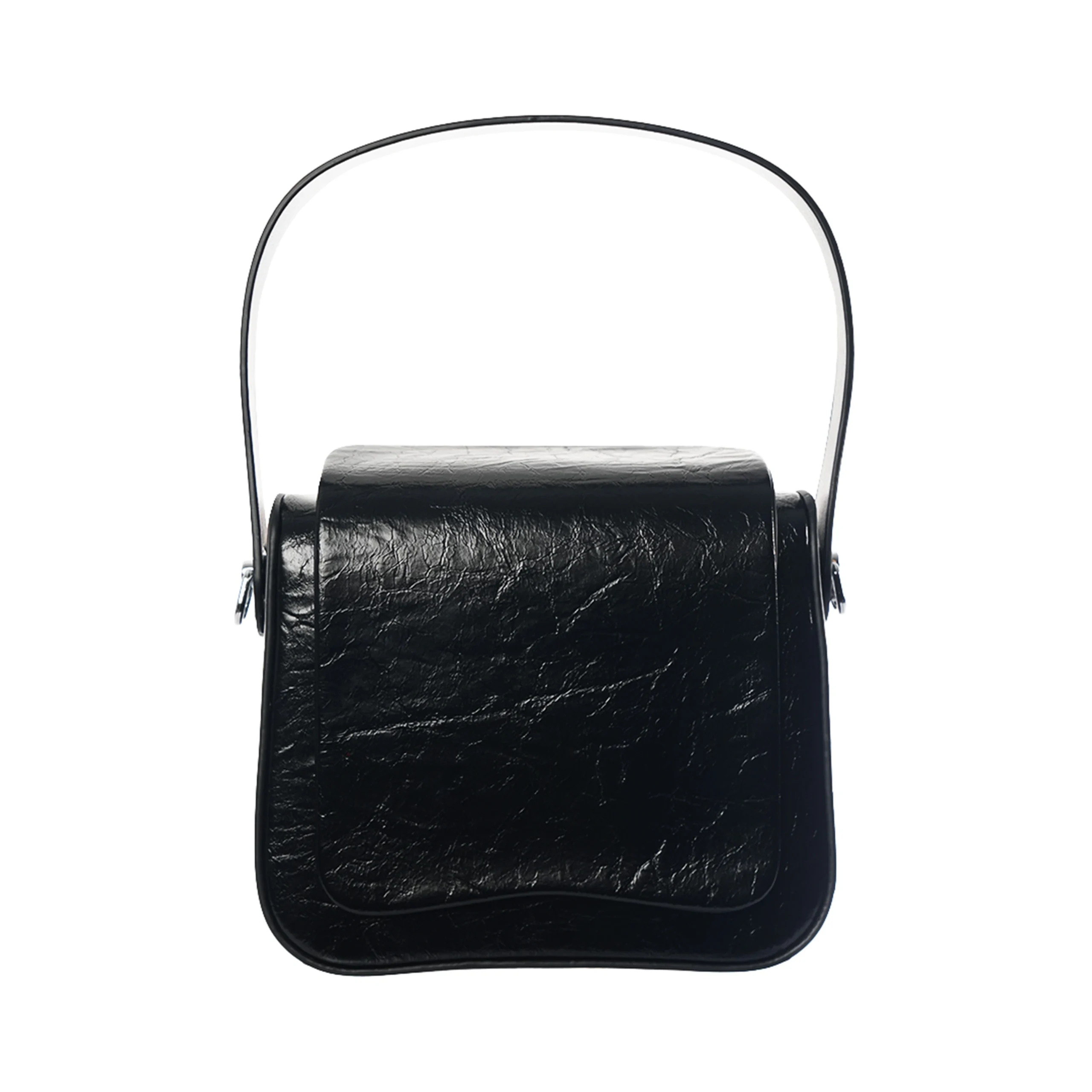 Designed in Rich Maroon, Army Green, Black and Espresso tone with a distinctive vintage crackle texture, Teja features a structured silhouette that holds its shape beautifully. The curved flap closure adds softness to its strong form, while the top handle offers a classic finish. A detachable shoulder strap allows seamless transition from hand carry to crossbody wear.