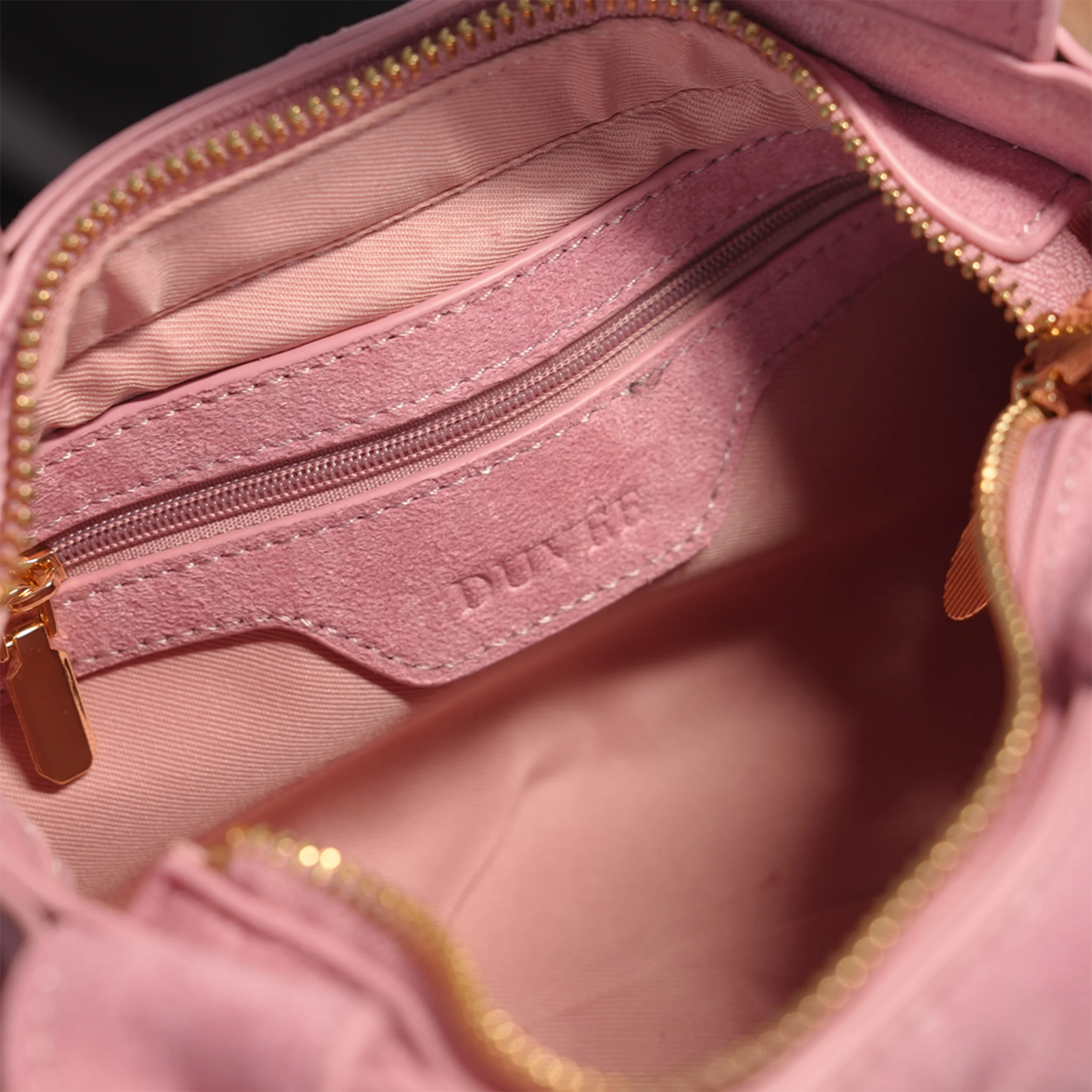 • Material: The exterior appears to be crafted from a high-quality suede or nubuck, providing a matte, velvety texture.
