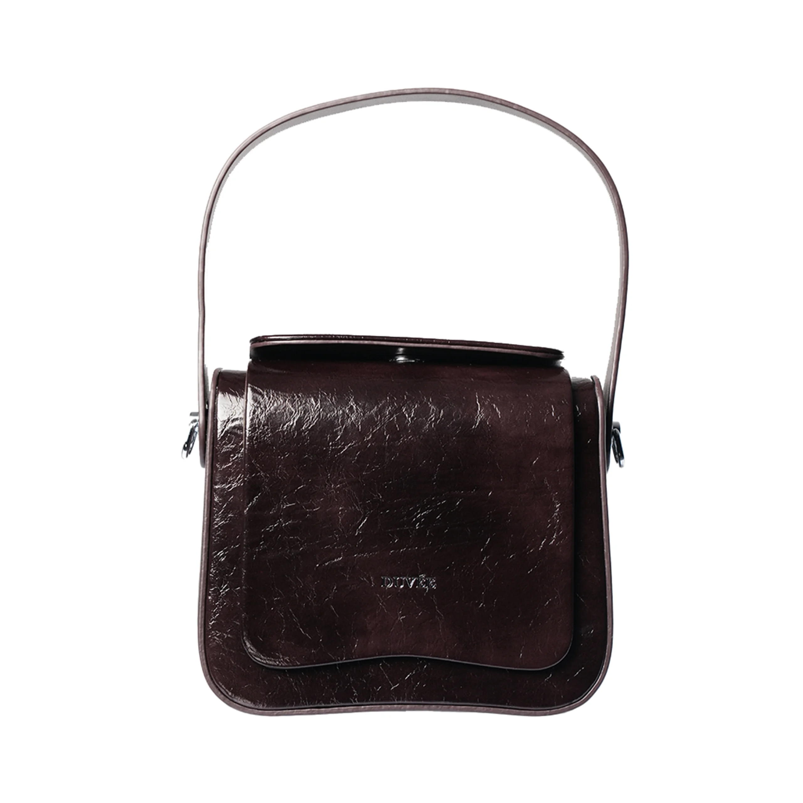 Designed in Rich Maroon, Army Green, Black and Espresso tone with a distinctive vintage crackle texture, Teja features a structured silhouette that holds its shape beautifully. The curved flap closure adds softness to its strong form, while the top handle offers a classic finish. A detachable shoulder strap allows seamless transition from hand carry to crossbody wear.
