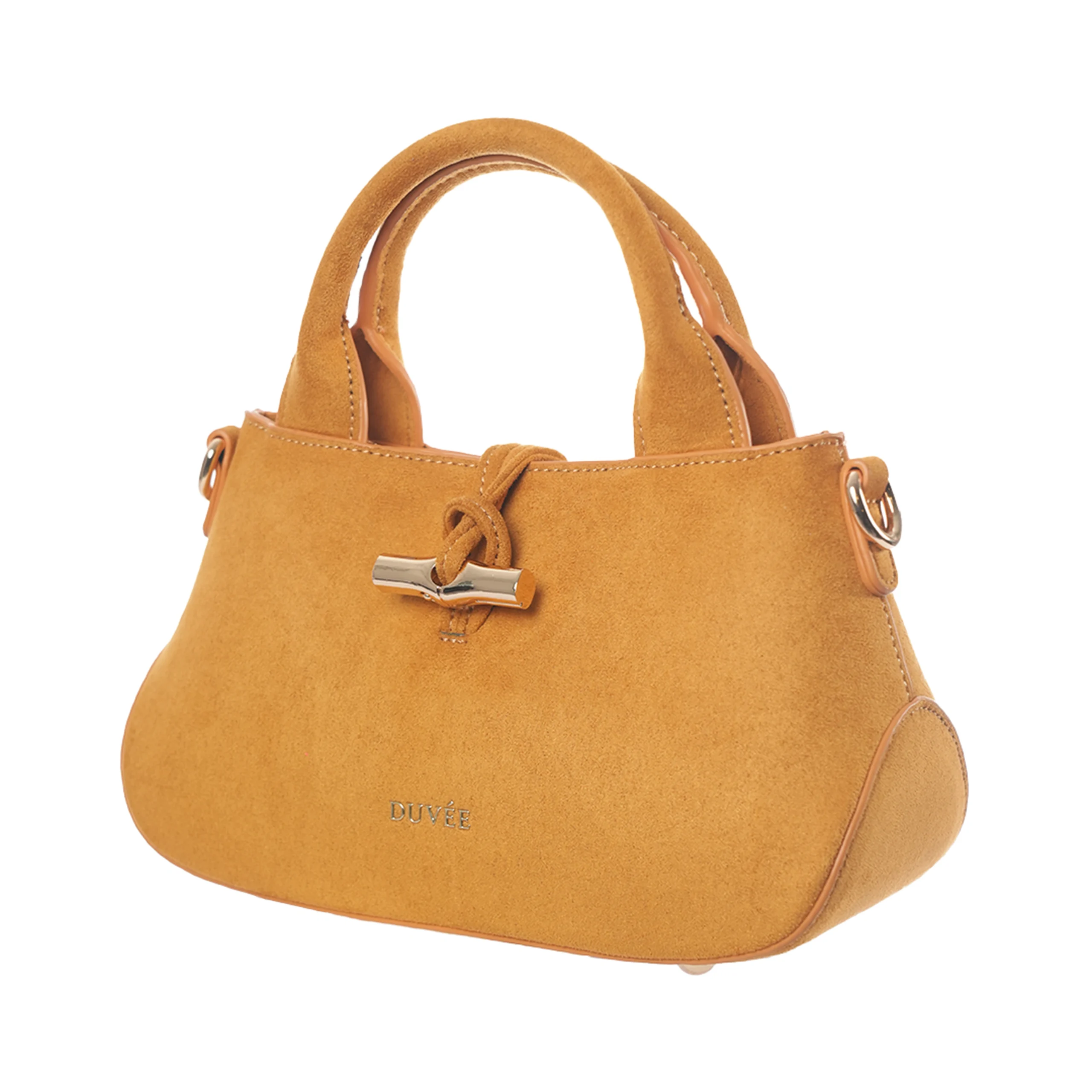The Melur bag by Duvee is a sophisticated, small-scale handbag that blends classic structure with a modern, tactile finish. It features a distinctive horizontal silhouette with a slightly flared base, giving it a soft yet architectural feel.