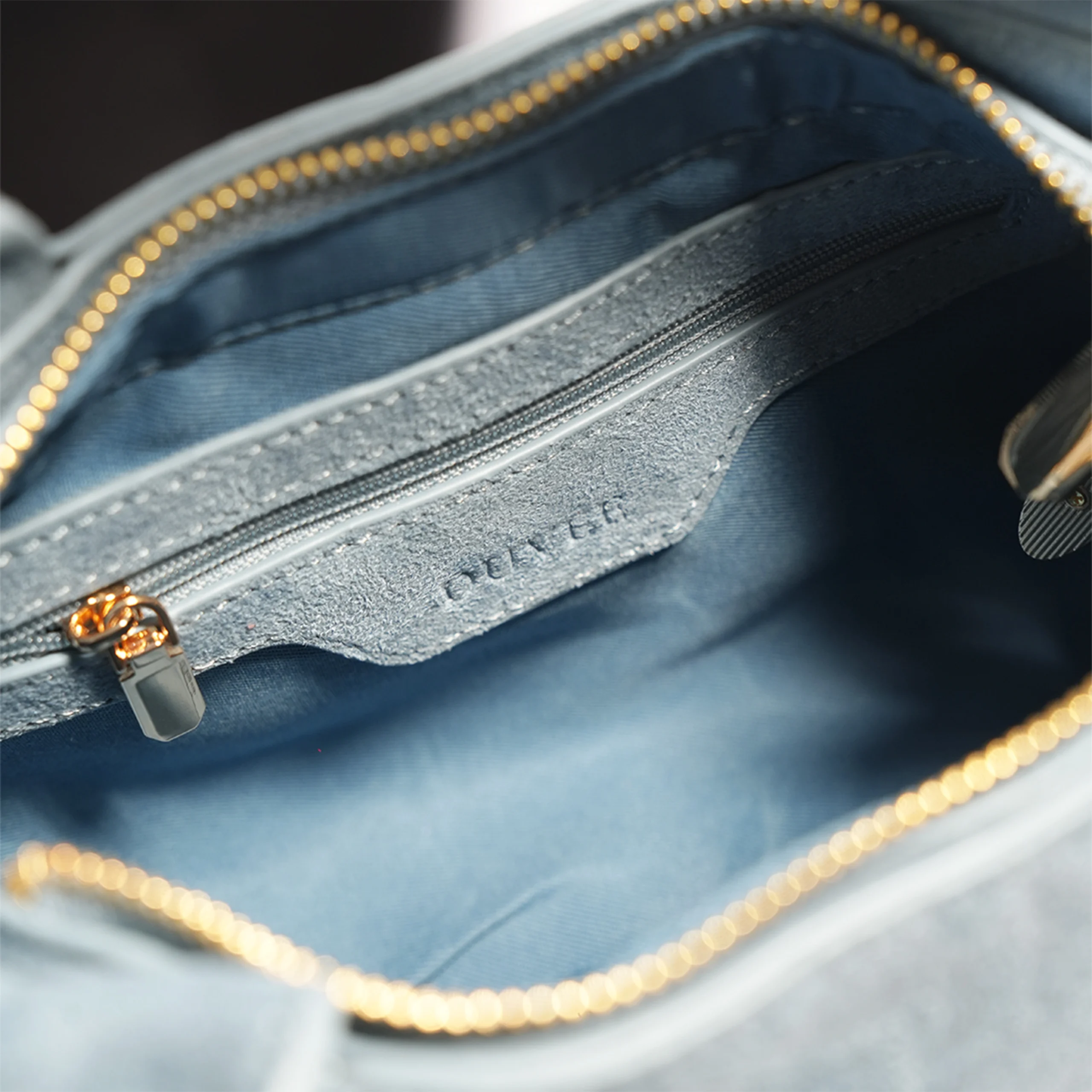 • Material: The exterior appears to be crafted from a high-quality suede or nubuck, providing a matte, velvety texture.